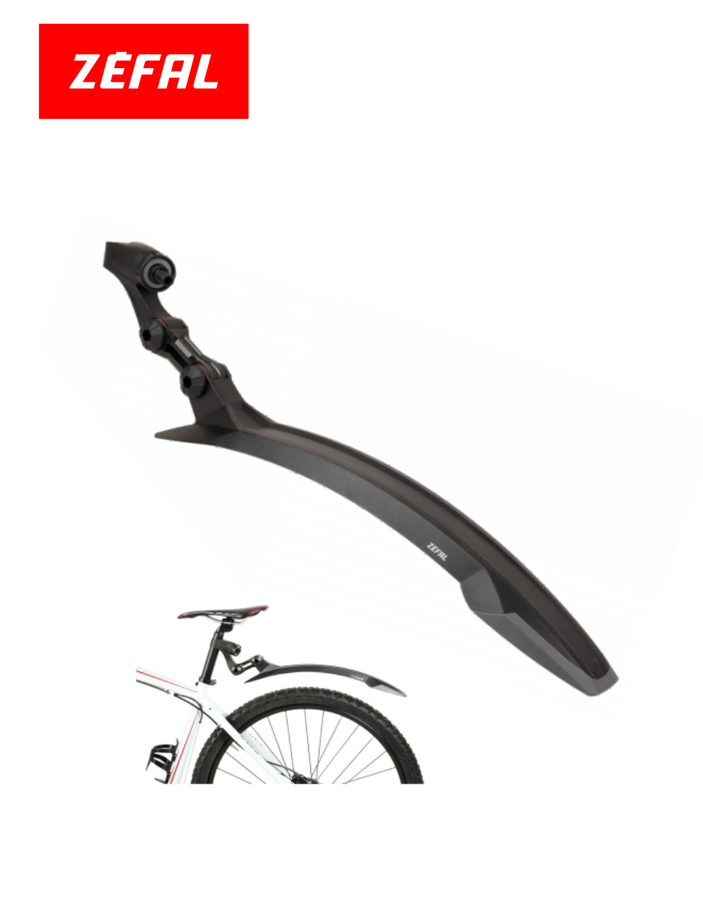 Weight : 166 g Material : Technopolymer resin with dual material spoiler Mounting : MD-Turn- On seat post - Adjustable for Dia 25 to 35mm Dimensions : 520mmx66-72mm Wheel Dia : 26" & 27.5" Protection level : High Blade width : From 66 to 72 mm / From 2.6" to 2.8" Max. tire width recommended : 2.4"